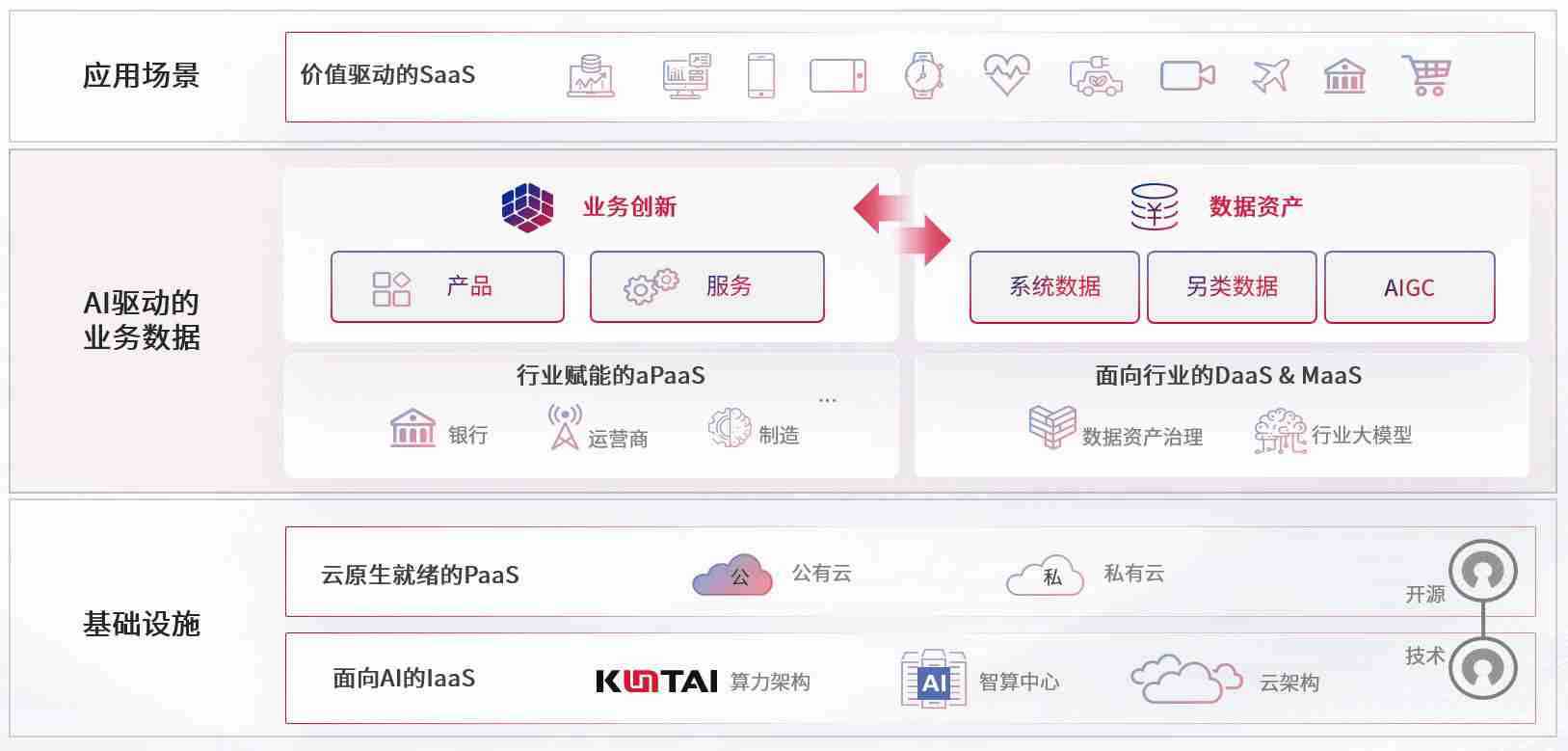 数字时代,,围绕企业数字化转型的关键要素,,OK钱包数码开创性的提出数云融合战略和技术体系框架,,着力在云原生、、数字原生、、、、AI原生和信创产业上架构产品和服务能力,,,为处在不同数字化转型阶段的快消零售、、、、汽车、、金融、、、、医疗、、、政企、、教育、、、运营商等行业客户提供泛在的敏捷IT能力和融合的数据驱动能力,,,,构建跨界融合创新的数字业务场景和新业务模式,,,,助力企业级客户建立面向未来的核心能力和竞争优势,,,,全面推动社会的数字化、、、智能化转型升级。。。